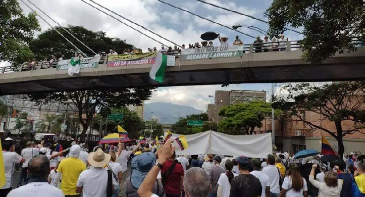 Los opositores también salieron en Medellín, capital del departamento de Antioquia. Se concentraron en el cruce de la avenida Oriental con La Playa y se movilizaron hacia la plazoleta del Centro Administrativo La Alpujarra.
