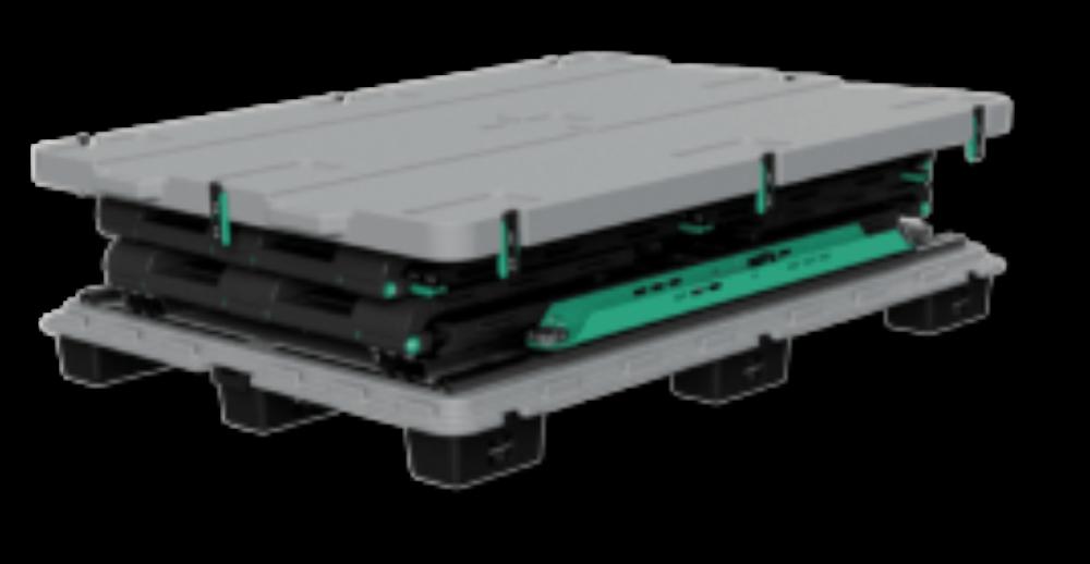 StackTech allows the sidewalls and lids to nest and stack on top of the pallet base when not in use. The disassembled unit is less than 1/3 its fully assembled size for easy, cost-effective return and storage.