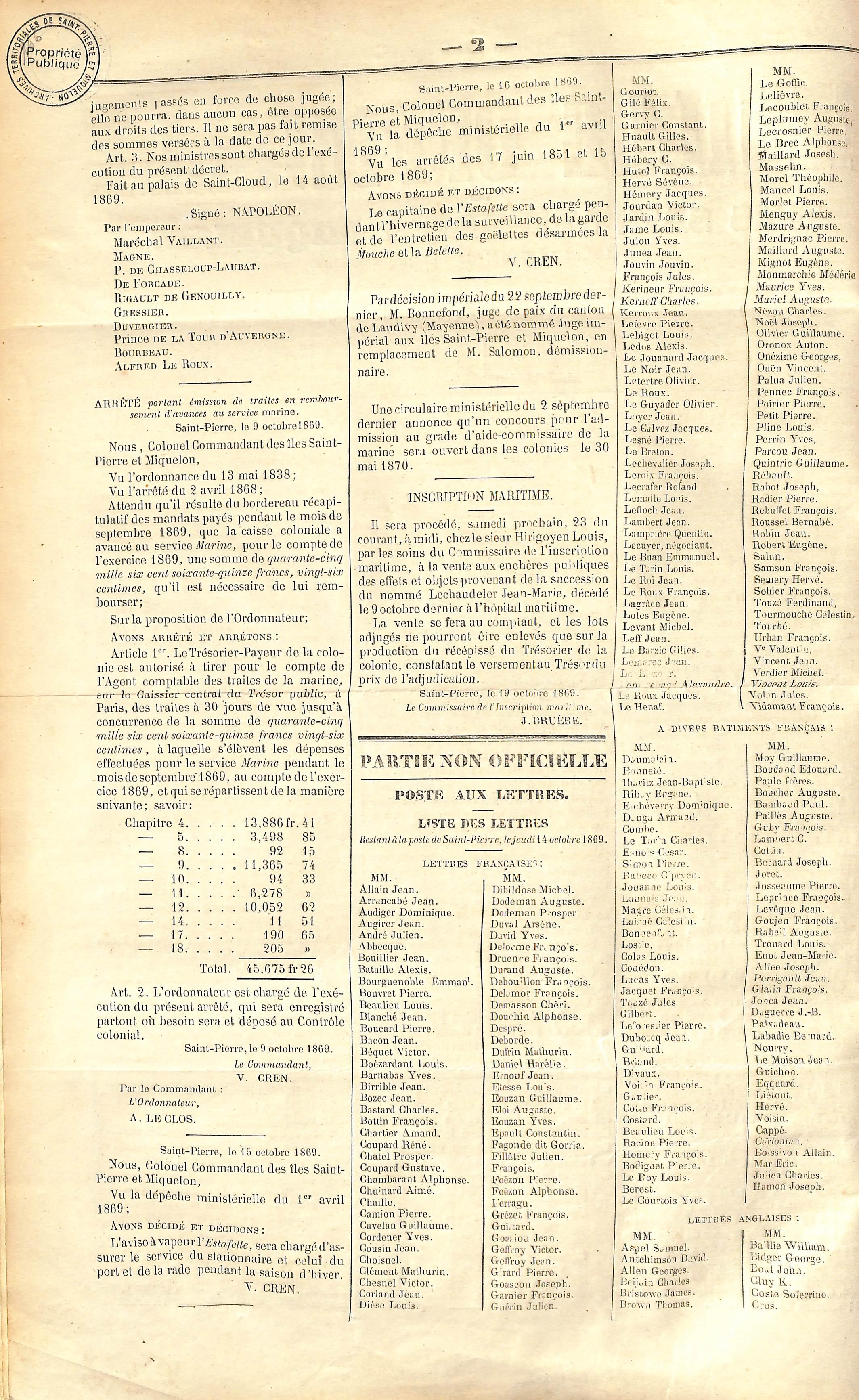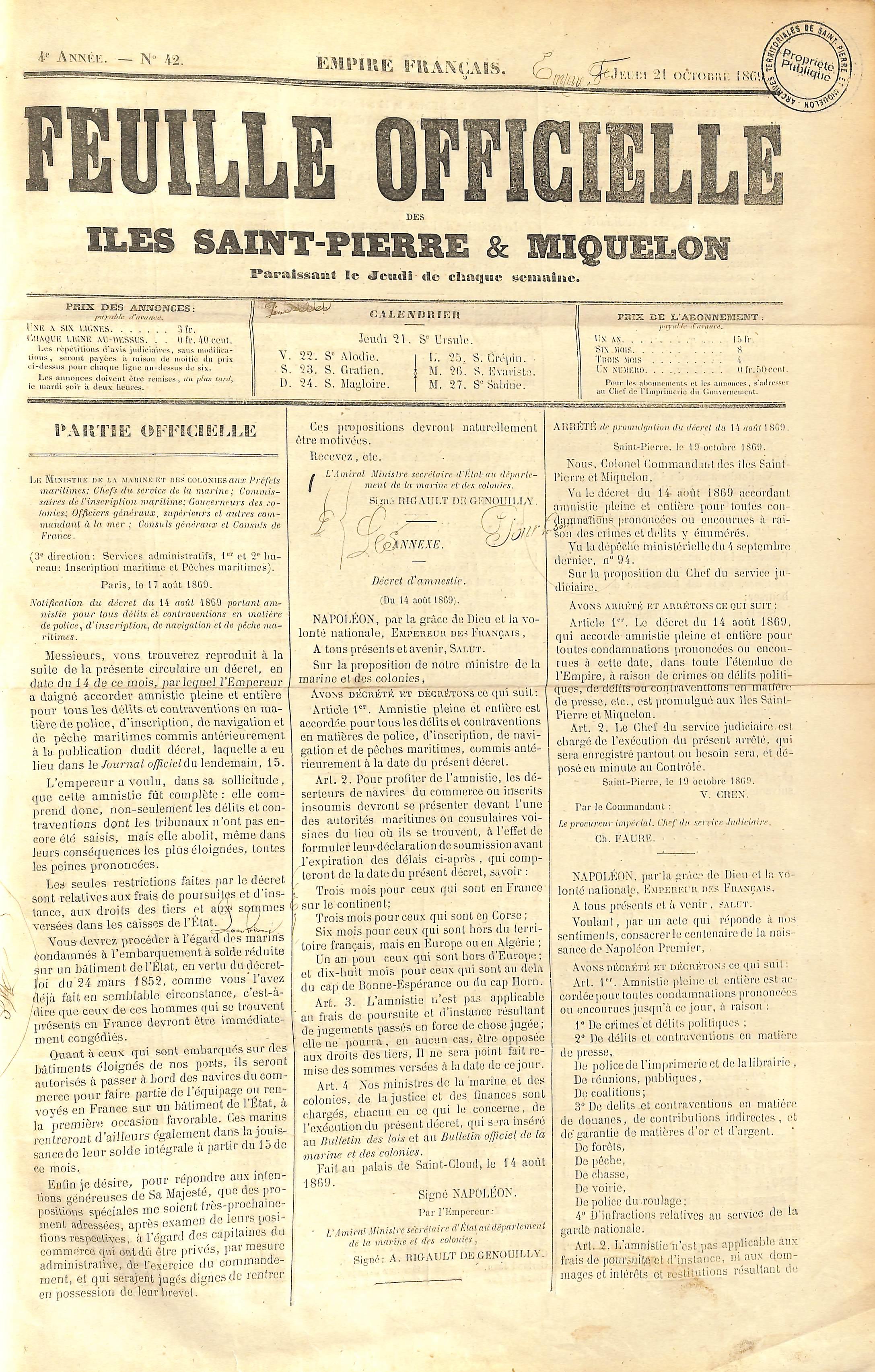 1869-10-21 by L'Arche Musée et Archives Saint-Pierre et Miquelon - Issuu