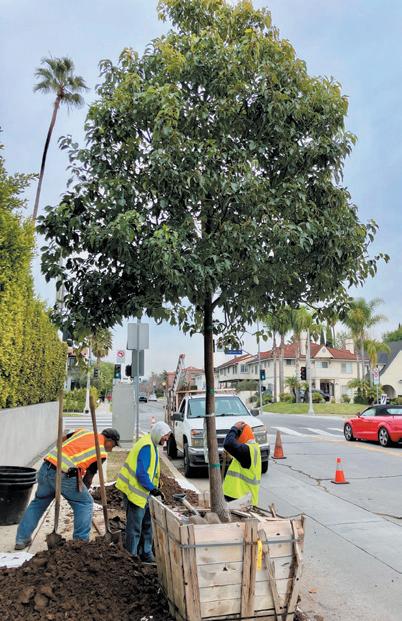 Mid-December saw landscape workers and their vehicles along several streets in Hancock Park. They were there for a big project — planting approximately 25 trees in community parkways. Funds from dues collected from members of the Han-