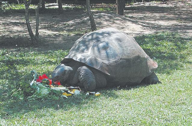 by a small playground on one side and a pond with turtles and koi on the other. The plaques on its base display quotes for visitors to ponder while meandering through the area. One says, “These gardens are dedicated to the spirit of cooperation,” another, “As you play well together, thrive together … here in this garden,” and lastly, “Preserve today for tomorrow.” Enjoy your stroll.