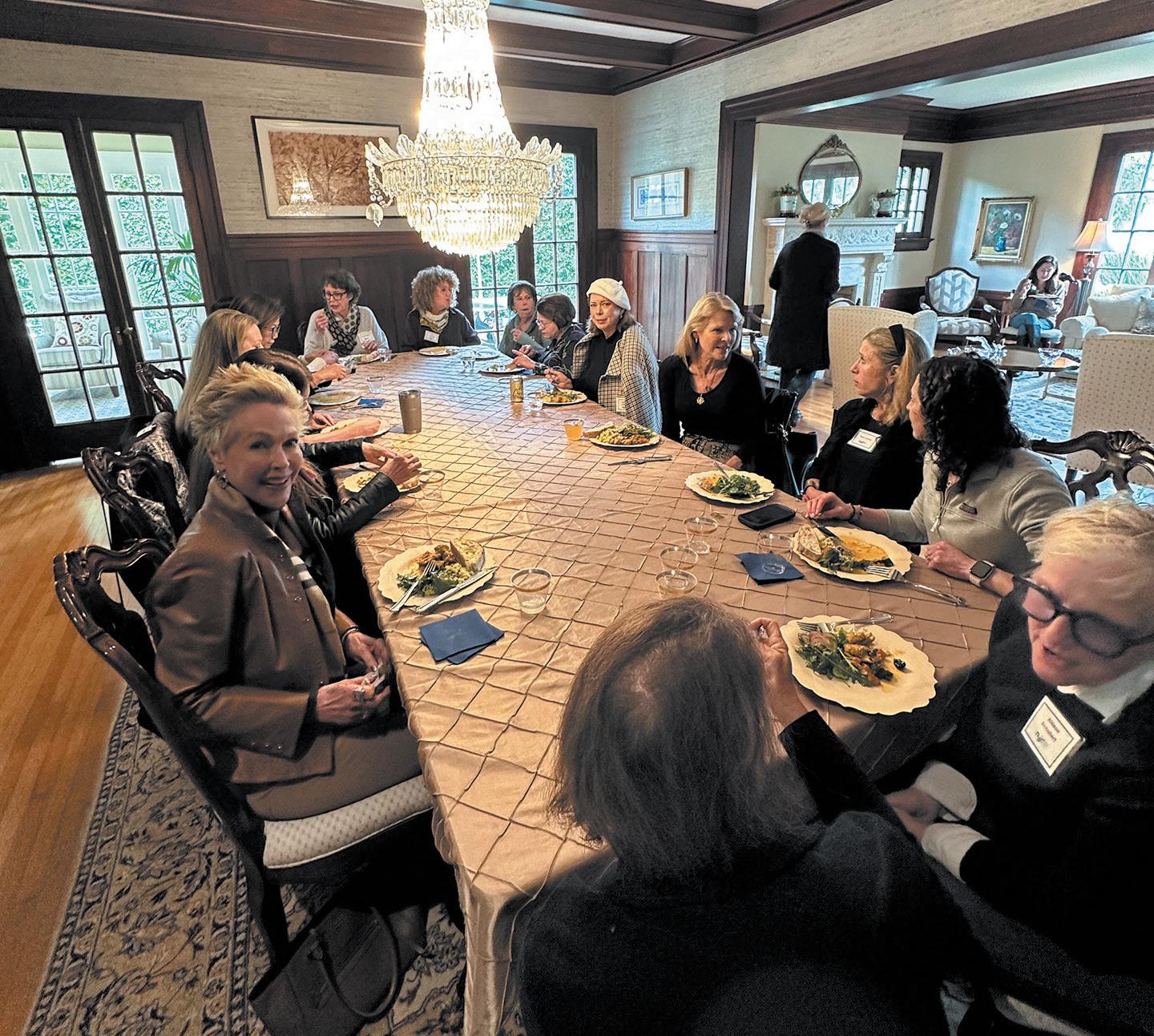 FOUNDING MEMBERS AND OFFICERS at the first LUNA event. From left, back row: Chris Shanley, Auriell Spiegel, Dave Cavalier, John Holloway and Sam Uretsky. Front row: Sarita Singh, Annie O’Rourke, Georgea Fenady, Clelia El Adl Clemens (seated), Todd Clemens, Dennis Boyle, Natalie Irby, Maggie Peña and Keith Johnson.
