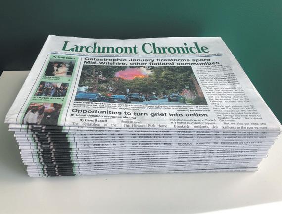 Since we moved to this neighborhood 22 years ago, we have seen a lot of changes — stores and restaurants come and go, houses and storefronts get renovated. The one constant has been the Larchmont Chronicle This paper is all of ours — our community, our schools, our places of worship. Our part of Los Angeles is truly, both literally and figuratively, in the heart of the city. Films are made, new restaurants MARCH