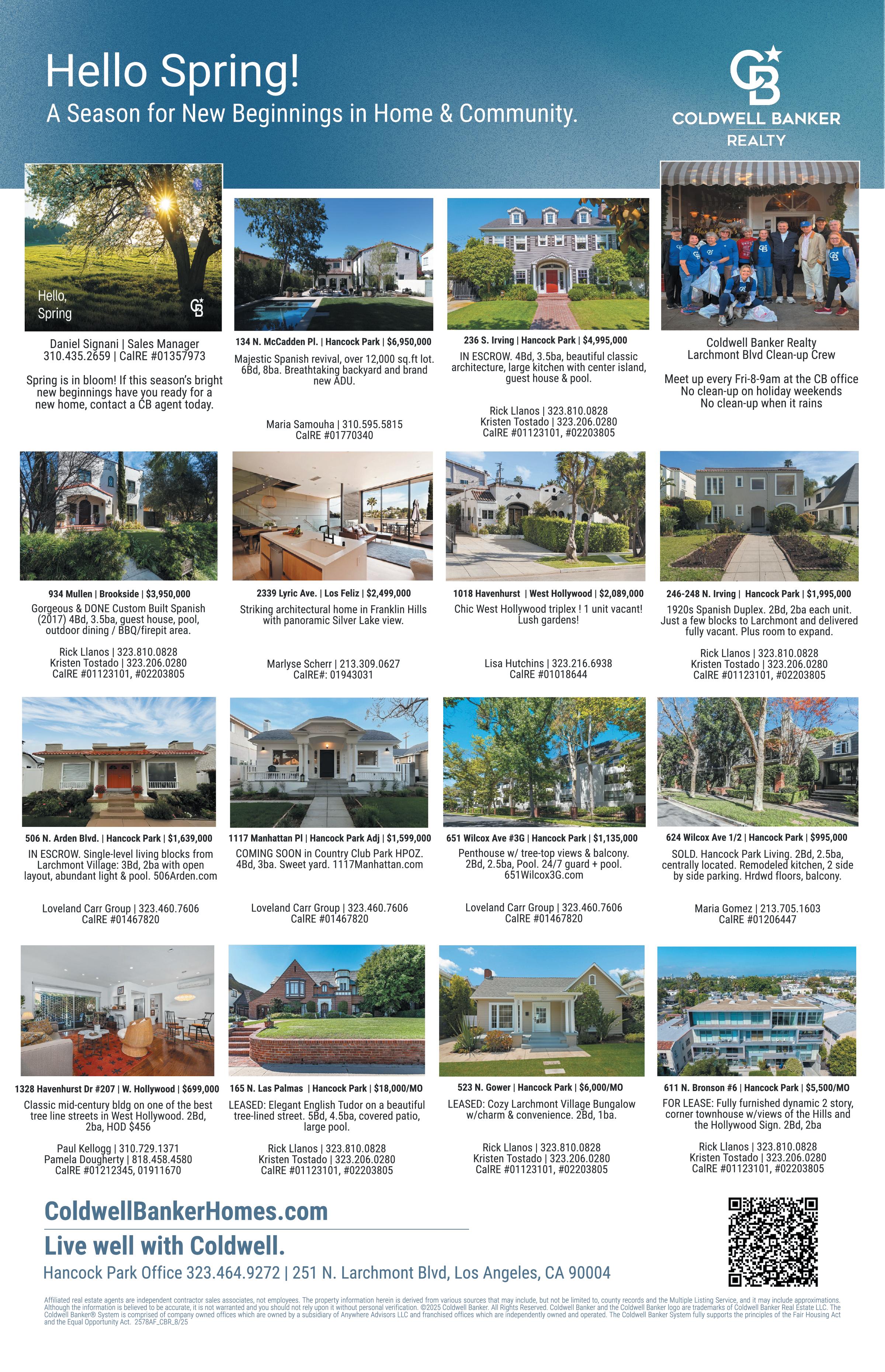 Coldwell Banker Realty remains deeply invested in Larchmont and Hancock Park through the agents who live here, raise families here, volunteer here, and continue to serve this market every day. While our presence is transitioning to a new space, it will continue to be defined by people — trusted professionals whose knowledge of these streets, homes, and histories cannot be replicated.