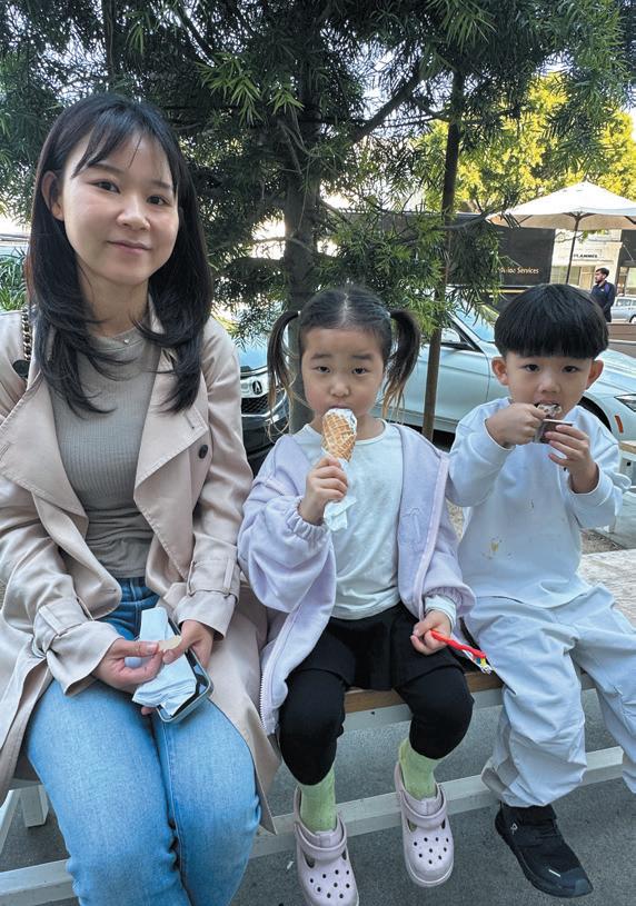 GIRL SCOUTS selling the last of the cookies on the Boulevard. (From left) Everly Choi, Yara Hamilton, and Monroe Stewart.