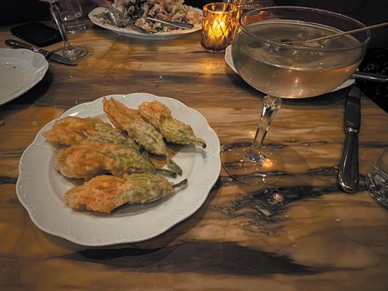 RICOTTA-STUFFED squash blossoms, dirty martini.