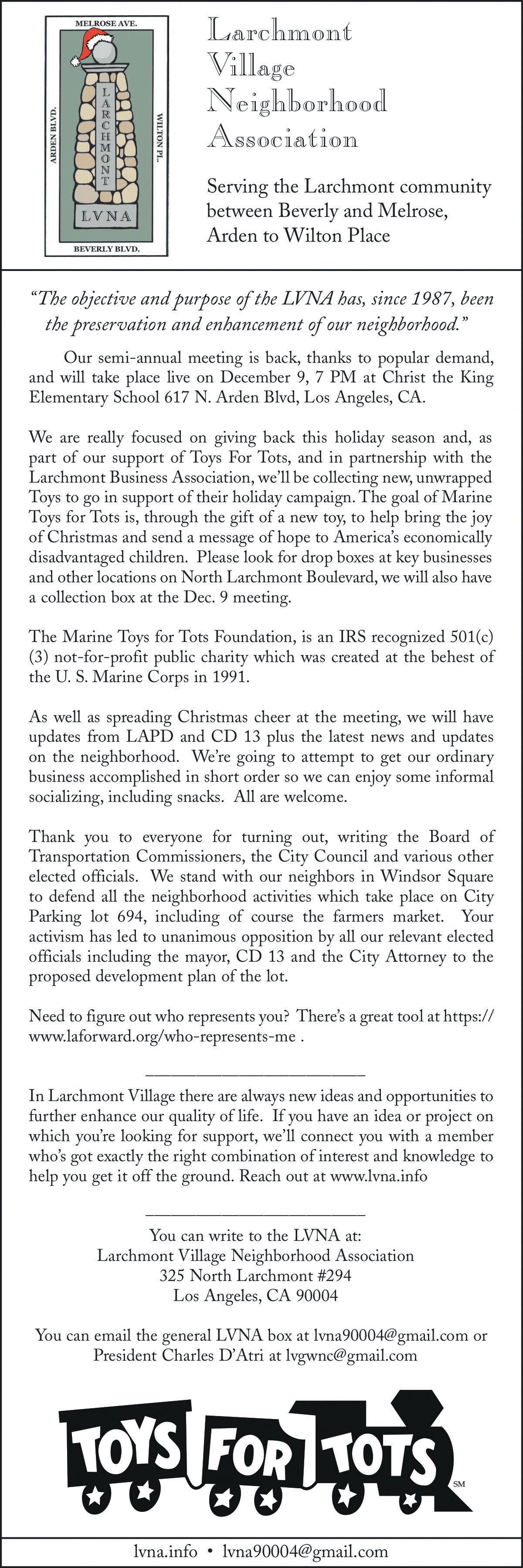 LARCHMONT TOWN SQUARE SAVED! Thank you to all of you who sent letters and emails as well as attended the committees and hearings to voice your opposition to the proposed deal that would have seen Lot 694 at 209 N. Larchmont Blvd leased for development. Your opposition convinced our Councilman Hugo Soto Martinez to take a bold stance and oppose the deal!