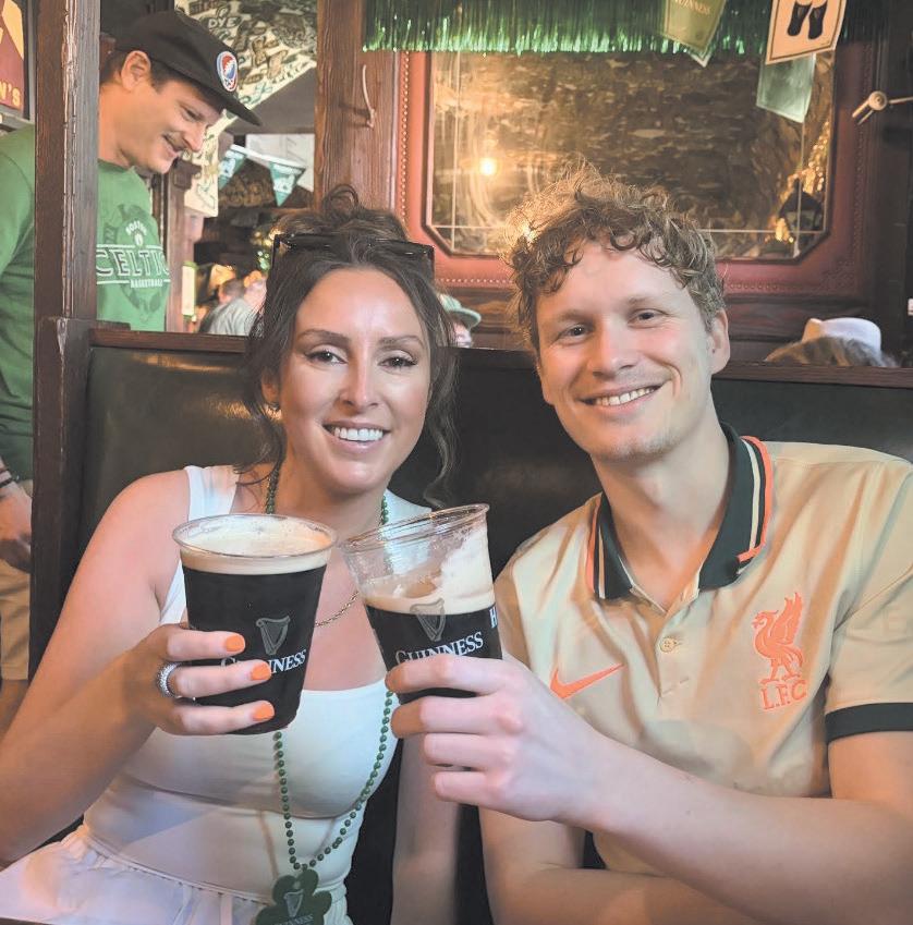 STRAIGHT FROM IRELAND, lass Eimear Callaghan and Jack Lancaster raise a glass. Sláinte!