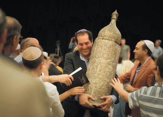 CELEBRATING THE SUCCESS of the temple’s capital campaign in 2014, Mitchell Schwartz of North Van Ness Avenue carries the torah through synagogue.