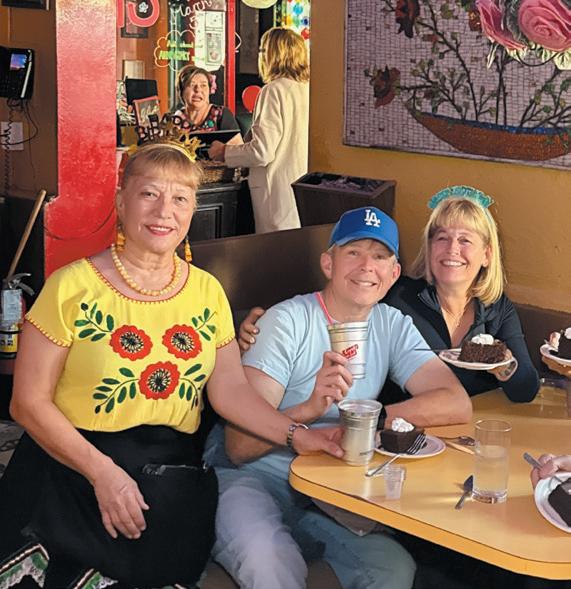 LONGTIME STAFF, Trini, and regulars enjoy a sweet treat to ring in 95 years of El Coyote.