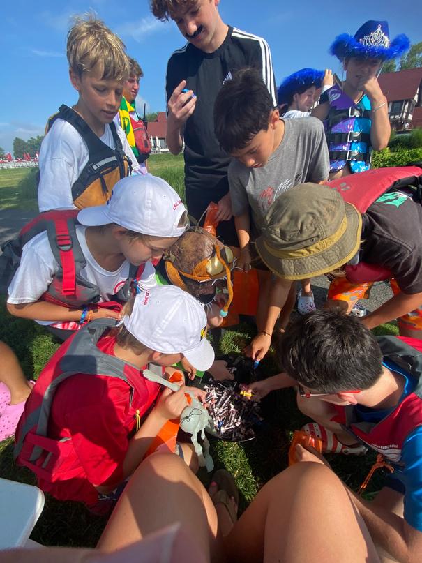 Our Opti 1s got all out on the water with sails up! With some no breeze days earlier in the week, they took the opportunity to do some swimming, but by Friday they all set sail off the dock with perfect weather. Our Opti 2s played battleship on the no wind days, but were able to get out sailing during the breeze on Friday. They worked on sailing a course and points of sail.