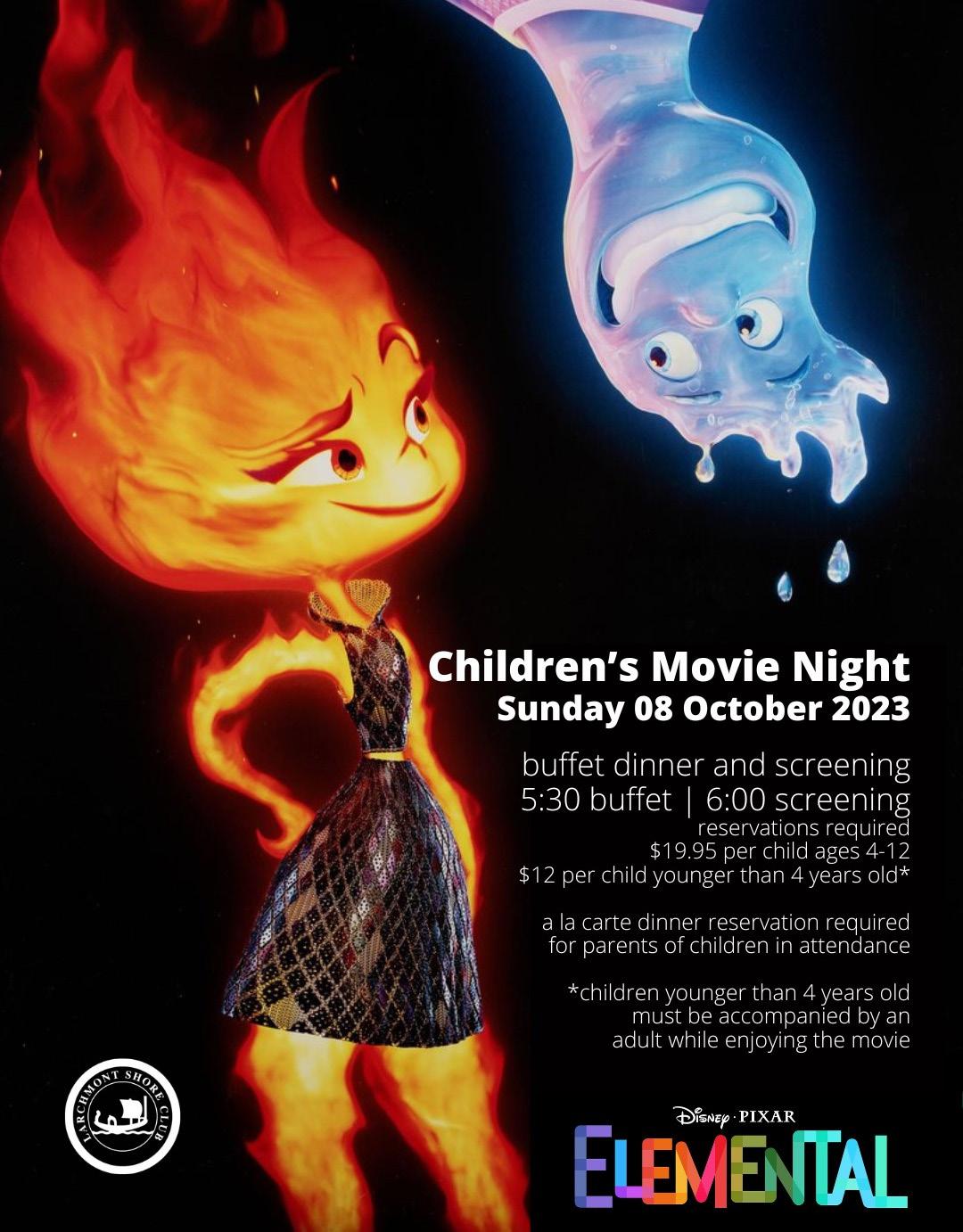 ELEMENTAL IS THE 2023 DISNEY/PIXAR FILM DESCRIBED AS "SET IN A WORLD INHABITED BY ANTHROPOMORPHIC ELEMENTS OF NATURE, IN A CITY WHERE FIRE, WATER, LAND, AND AIR RESIDENTS LIVE TOGETHER, A FIERY YOUNG WOMAN AND A GO-WITH-THE-FLOW GUY DISCOVER SOMETHING ELEMENTAL: HOW MUCH THEY HAVE IN COMMON." REGISTRATION REQUIRED VIA THIS LINK $19.95 PER CHILD AGES 5-12 $12 PER CHILD AGE 4 AND YOUNGER*