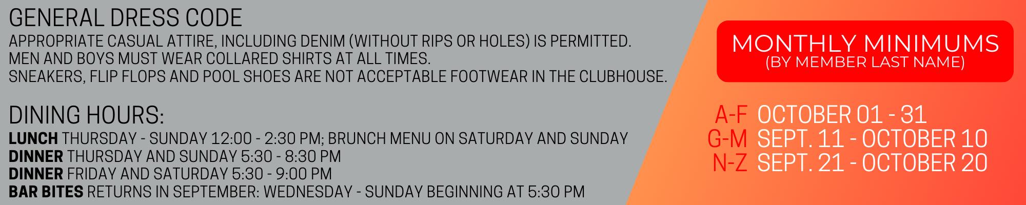 A la carte and casino|sports bar menus, and hours of operation for October, are also available for viewing on the Club website . Reservations are required for a la carte dining and can be made via the app/ website , or by calling the Club.