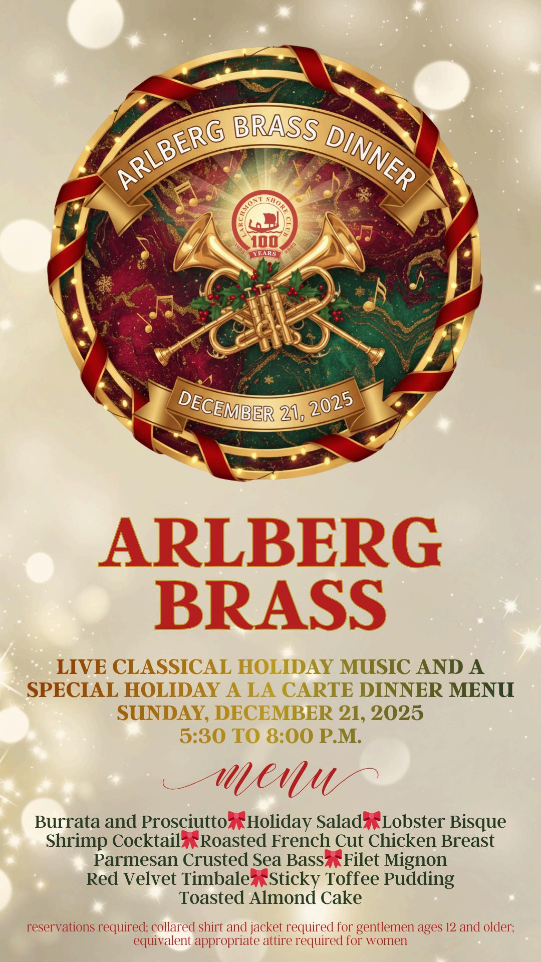 A Larchmont Shore Club tradition. Enjoy a special holiday a la carte dinner menu starting at 5:30 pm. Live holiday music performed by the Arlberg Brass Quartet begins at 6:00. See page 6 for the menu. Reservations required via this link or via phone