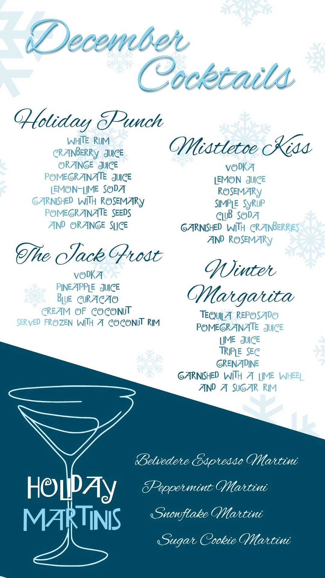 Join fellow members for Happy Hour on Thursday and Friday evenings in December. Happy Hour is 5:00 - 6:30 pm at The Grille Bar. $5 draft beers, $7 well drinks and $9 glasses of house wine
