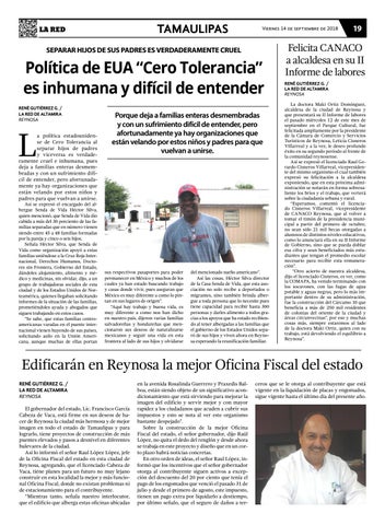 Política de EUA “Cero Tolerancia” es inhumana y difícil de entender René Gutiérrez G. / LA RED DE ALTAMIRA REYNOSA