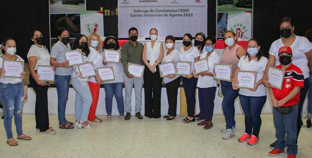 Enfomento al auto empleo y a la gene ración de nuevas oportunidades para las mujeres, la Sra. Ana Cris tina Organista de Oseguera, presidenta del Sistema DIF Madero, hizo entrega de constancias a 75 alumnas del Centro de Desarrollo Inte gral Familiar (CEDIF) Luna Luna, que concluyeron su curso intensivo en diferentes oficios.