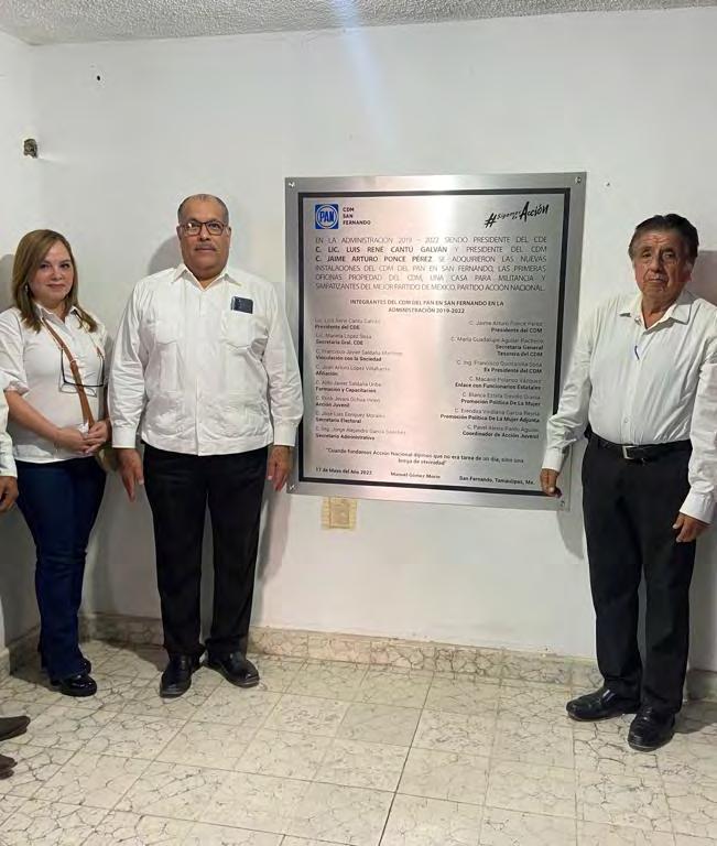 Tras varios años de andar gestio nando para poder tener instalaciones propias, este miércoles 28 de sep tiembre, el Comité Directivo Munici pal del PAN en San Fernando develó una placa conmemorativa por moti vo de las nuevas instalaciones pro piedad del partido en San Fernando.