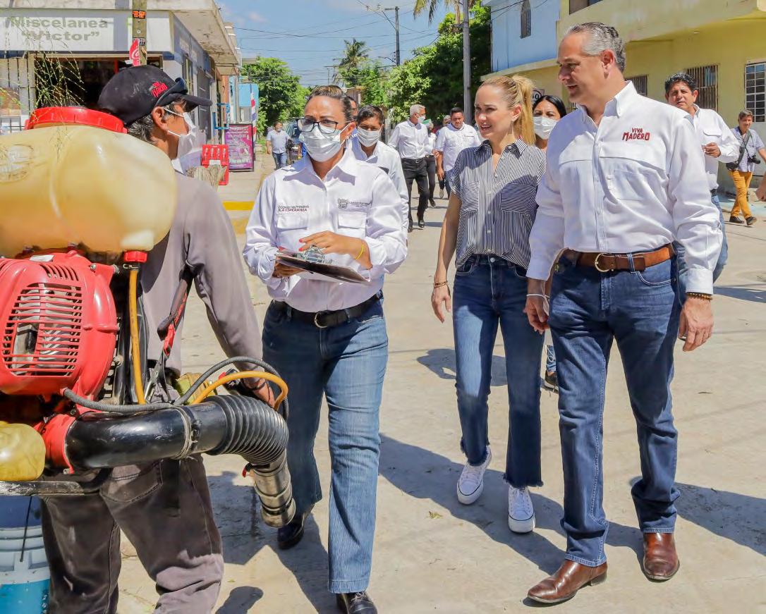 por su esposa, la Sra. Ana Cristina Organista de Oseguera, presidenta del Sistema DIF Madero, recorrió puntos estratégicos del municipio para supervisar las acciones de fu migación reforzadas a través de las cuadrillas de Municipio Saludable.