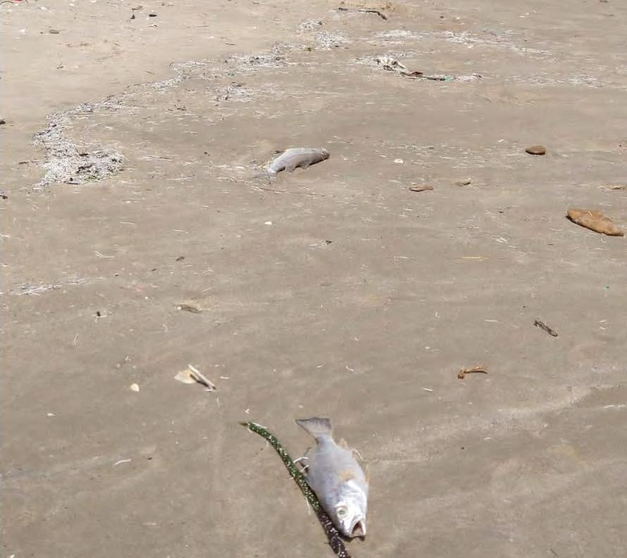 Asimismo, indicó que «en el sitio se encontró la presencia de peces muertos en playa y un fuerte olor debido a este fenómeno».