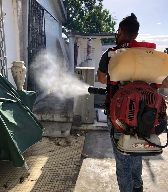 Trabajos de limpieza, abatización y fu migación en los cementerios municipa les “Las Chacas” y “Árbol Grande” lleva a cabo el Gobierno de Ciudad Madero, a través de la Dirección de Municipio Sa ludable y Protección Animal, con el pro pósito de reforzar las acciones de lucha contra las enfermedades transmitidas por vectores.