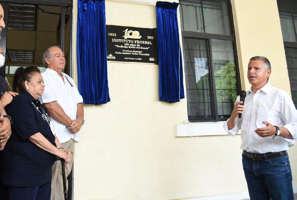historia, por ello estar hoy aquí celebrando el centenario del Instituto Froebel nos llena de gusto, porque es una institución que por un siglo ha formado ciudadanos y profesionistas que han sido un activo muy impor tante en el desarrollo de Tampi co, Ciudad Madero y Altamira”, mencionó.