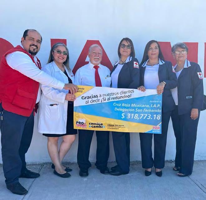 En ceremonia efectuada en las insta laciones de Cruz Roja Mexicana San Fer nando, el presidente del patronato local Dr. Marco Antonio Saldaña Juárez, acom pañado de voluntarios, recibió de manera simbólica por parte de personal de OXXO el cheque por un monto total de 318, 773.18 (Trescientos Diez y Ocho Mil Setecientos Setenta y Tres Pesos 18/100) en el periodo de abril-junio del 2022.