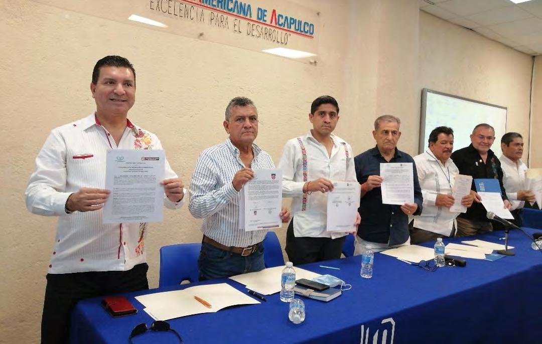 La firma de colaboración académica, estuvieron presentes el Dr. Francisco Chavira Martínez, rector de la Universi dad del Norte de Tamaulipas, Dr. Mario Mendoza Castañeda, rector de la Univer sidad Americana de Acapulco, Dr. Héctor Stopinni, presidente de la organización Latinoamérica de Administración, Dr. Gustavo Torres Blanco, presidente de Con la Guerrero, así como los represen tantes de las diversas instituciones edu cativas.