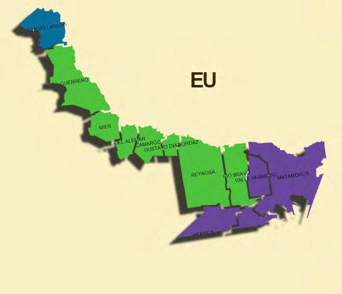 Está formada por los cinco municipios entre Nuevo Laredo, Reynosa, Miguel Alemán, Mier, Díaz Ordaz, Camargo y Guerrero, juntos forman una delgada franja alejada del resto de Tamaulipas, colindando al sur con Nuevo León y al norte con Texas, todas ellas a metros de EU.
