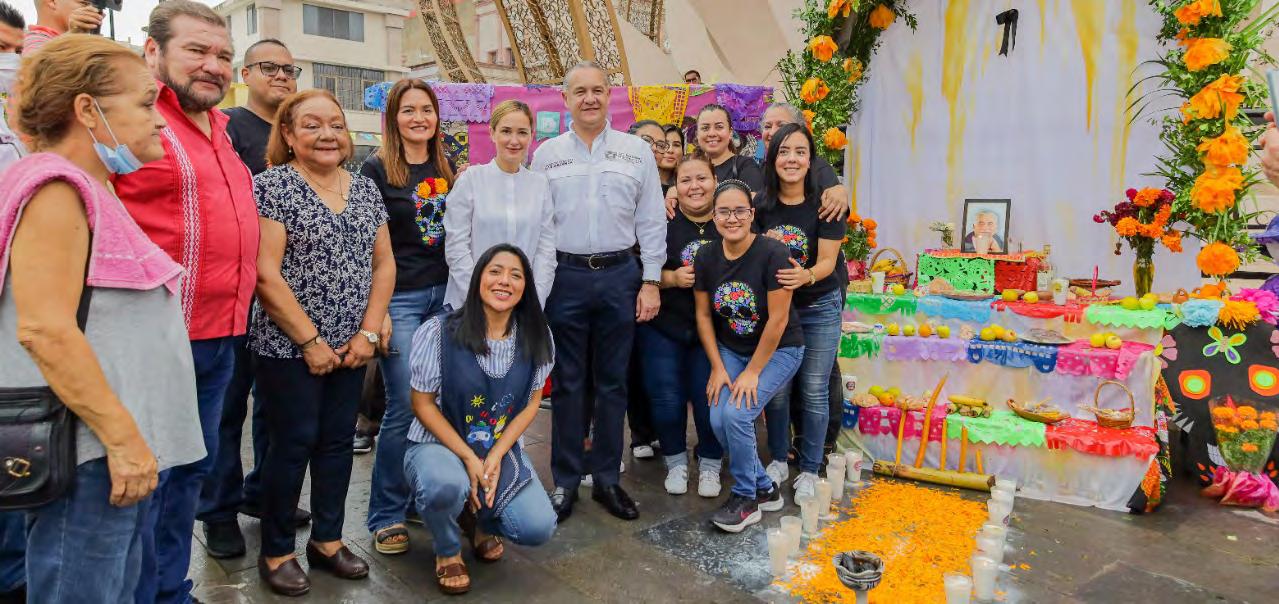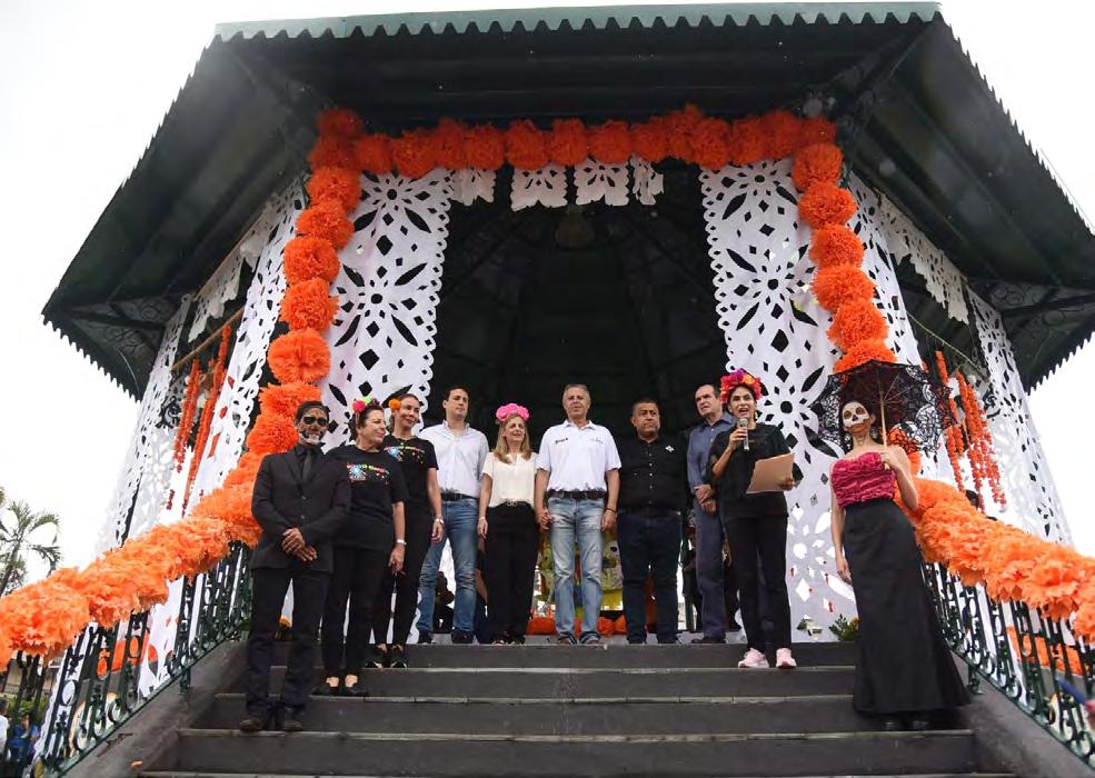 Elaroma del in cienso, el copal y la flor de cem pasúchil se pudo percibir este martes en la plaza Isauro Alfaro Otero, donde el Gobierno que en cabeza el alcalde Adrián Oseguera Kernion, llevó a cabo una emotiva exhibi ción de altares y catrinas, en búsqueda de mantener viva la tradición que da arraigo e identidad a una sociedad.