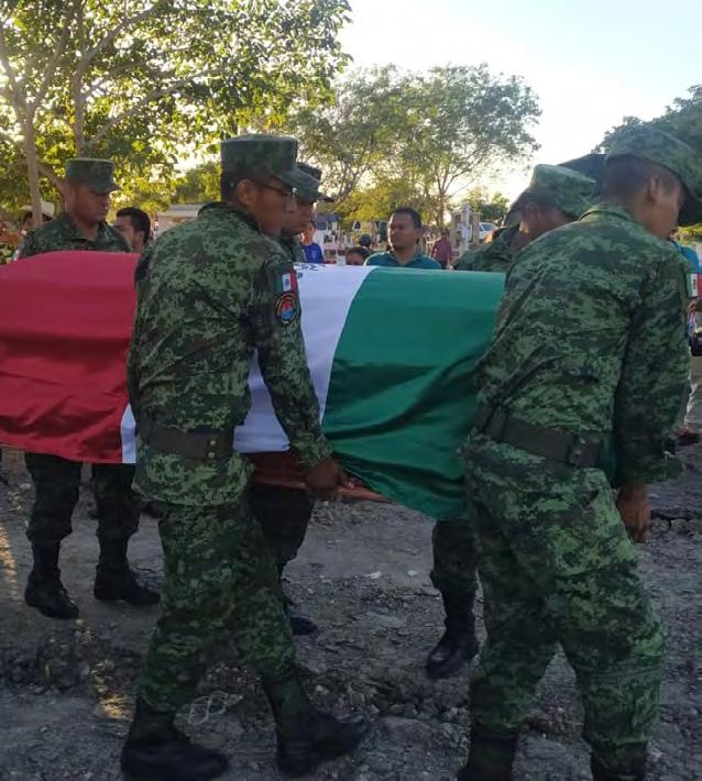 Tras concluir, partieron hacia el ce menterio del ejido Benito Juárez, donde su familia, dispuso que fuera enterrado. Ahí despidieron entre toques militares y un mariachi que entonaba “Una cruz de olvi do” y “Amor Eterno” mientras sus familia res lo despedían y lo dejaban en su última morada.