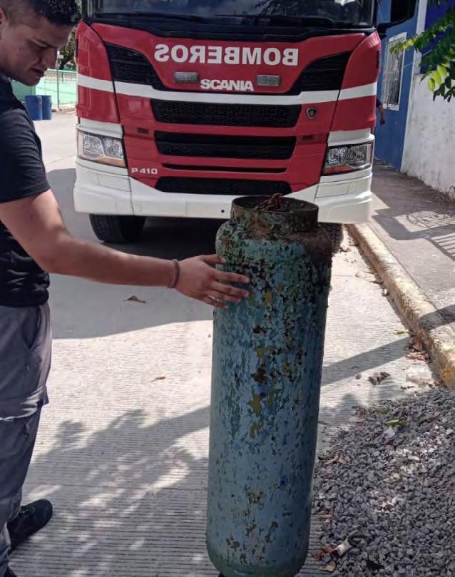 Elementos del Cuerpo de Bomberos continúan atendiendo los reportes de ci lindros de gas LP de uso domiciliario que se encuentran en mal estado, mismos que son retirados para prevenir algún accidente que ponga en riesgo a la ciuda