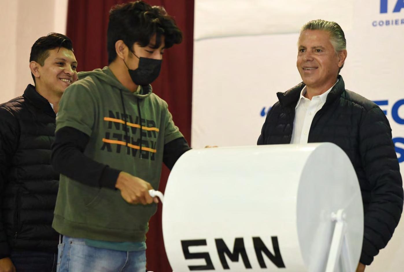 El presidente mu nicipal Chucho Nader encabezó el sorteo de Cons criptos del Servicio Mi litar Nacional efectuado este domingo en el Audi torio municipal de Tam pico.