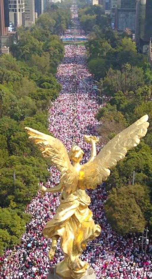 Los congregados llegaron desde tem prano al Ángel de la Independencia, un monumento que fue rodeado por miles de personas que protestaban: “por eso vine, a defender el INE”, siendo testigo el Ángel de la Independencia de como la marcha conti nuaba sin fin, pese a que en los alrededores del Monumento de la Reforma se comenza ban a acumular los manifestantes.