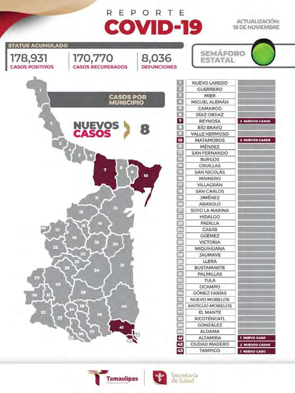 El acumulado de pacientes que han presentado COVID 19 desde el inicio de la pandemia en Tamaulipas, suman 178,931, de los cuales 170,770, se han re cuperado satisfactoriamente.