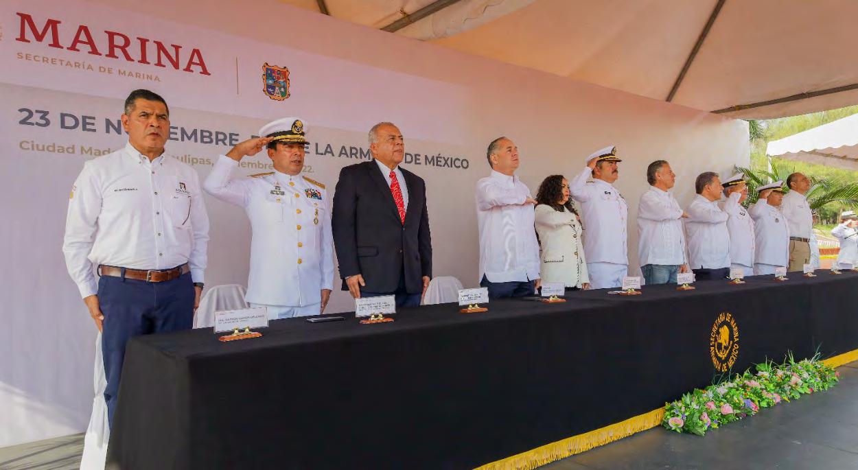 jo en Tamaulipas. También hizo acto de presencia en la ceremonia, el presidente Municipal de Ciudad Madero, Adrián Oseguera Kernion y sus homólogos de Tampico y Al tamira, así como el vicealmirante, Miguel Báez Barrera, director de Asipona Tampico.