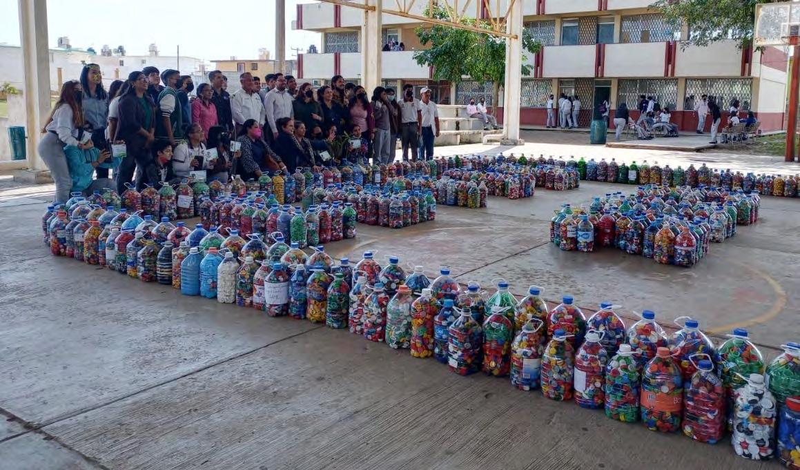 En dicha actividad se contó con la participación de un promedio de dos mil estudiantes de ambos turnos, quienes colectaron tapitas, envases de pet y pilas
