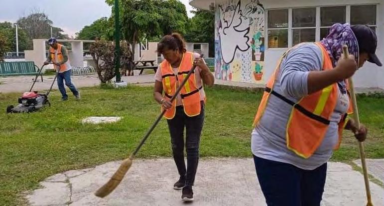 Refuerzan trabajos de limpieza en plazas y parques maderenses