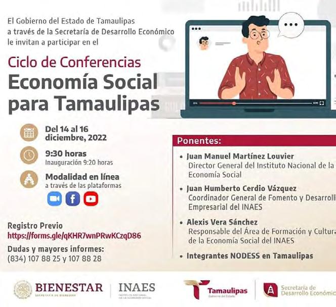 Con el objetivo de impulsar la economía social y solidaria a través de la formación y la capacitación, la Secretaría de Desarrollo Económico en colaboración con el Instituto Nacional de la Economía Social llevarán a cabo el ciclo de conferencias “Economía Social para Tamaulipas”.