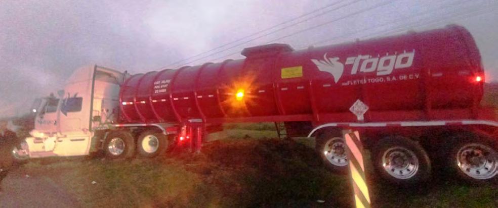 Una persona prensada y otra con lesiones menores, así como cuantiosos daños materiales, es el saldo de aparatoso choque entre un camión cisterna y un automóvil Tsuru color verde...