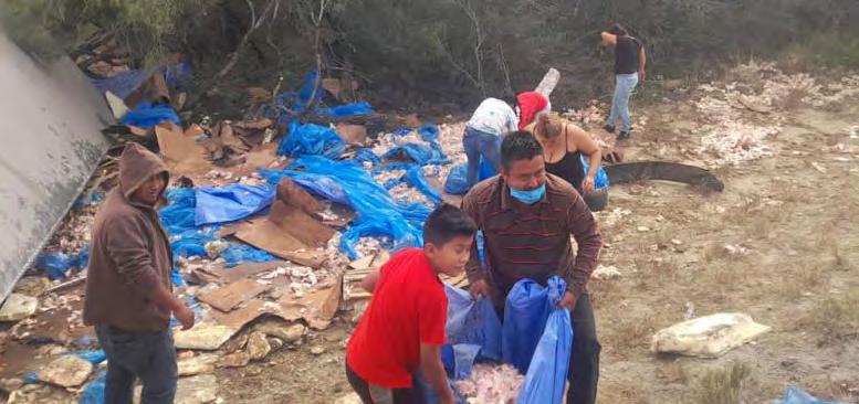 Al sitio también llegó un gran número de habitantes de San Fernando, quienes en un “descuido” de las autoridades procedieron a vaciar el camión, llevándose el alimento en la cajuela de los autos y cajas de camioneta.