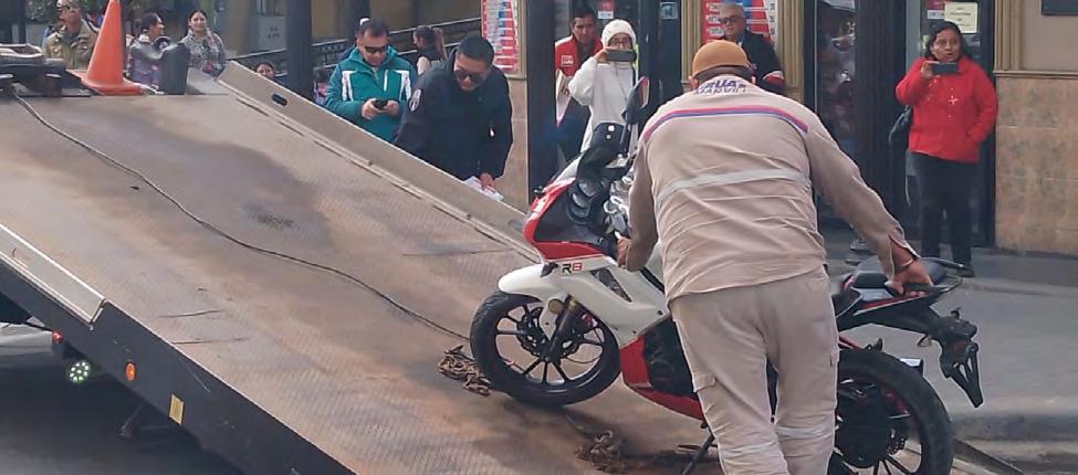 Las maniobras realizadas por una grúa, al arrastrar una motocicleta estacionada sobre la banqueta en la calle Héroe del Cañonero, casi esquina con Juárez, llamó la atención de decenas de peatones y automovilistas. El oficial del crucero indicó que el motociclista infringió al menos tres artículos del reglamento de Tránsito.
