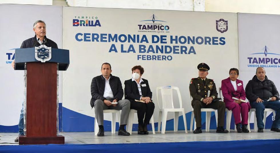 El alcalde Chucho Nader presidió este viernes la ceremonia conmemorativa al 106 aniversario de la promulgación de la Constitución Política Mexicana de 1917 en la escuela primaria José María Gajá de la zona centro de Tampico.
