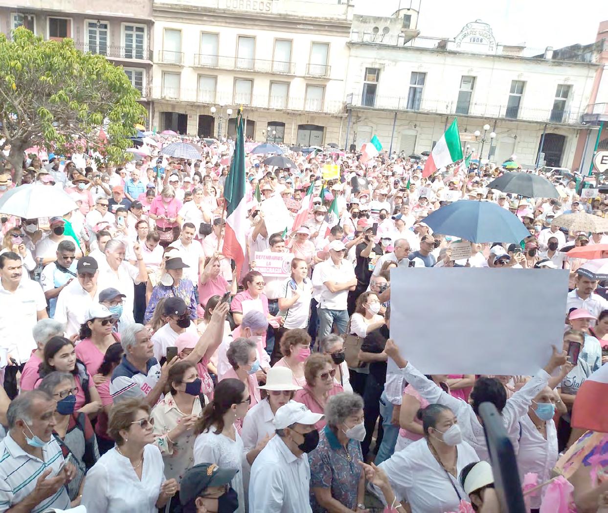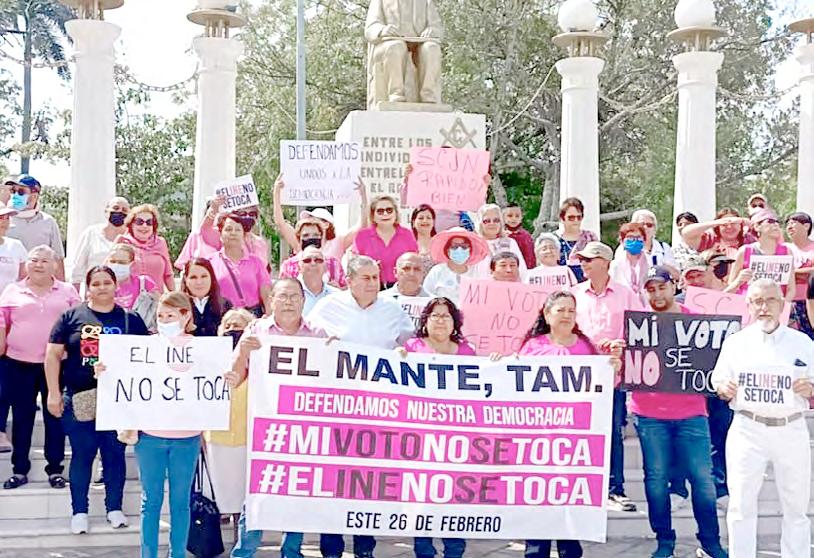 Miles de tampiqueños marcharon este domingo por la mañana desde las instalaciones del INE en la colonia Altavista hasta la plaza de la Libertad, donde se congregaron para manifestarse en contra de la aprobación del Plan B que propuso el presidente Andrés Manuel López Obrador, que consideran afecta al INE y a la democracia en el país.