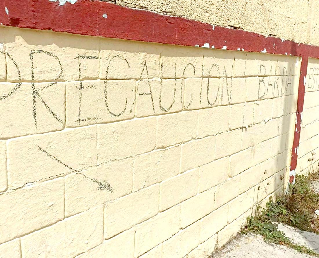 Parte de la barda de la primaria 20 de Noviembre podría venirse abajo, debido a los daños que presenta luego de que una maquinaria al servicio del ayuntamiento de Ciudad Madero la golpeó.