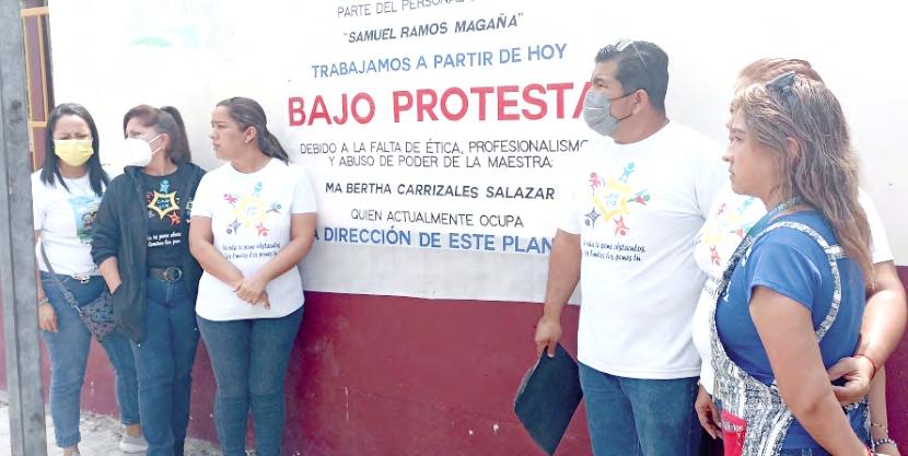 Al grito de fuera bertha Carrizales, maestros demostraron su repudio hacia la directora del Centro de Atención Múltiple, denunciando diversas arbitrariedades cometidas por la funcionaria educativa.