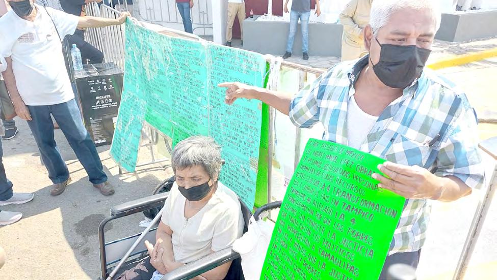 Portando varias cartulinas, el señor Florentino Álvarado pide ayuda al presidente Andrés Manuel López Obrador para que haya justicia para su esposa Angelina Cruz, quien sufrió lesiones tras un accidente de tráfico...