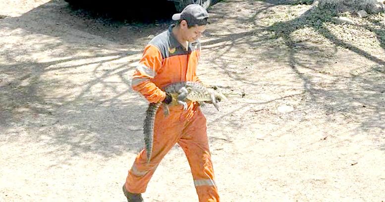 Un cocodrilo de más de un metro de largo fue capturado en el patio de la escuela secundaria número 5 de Ciudad Madero. El saurio estaba en el estacionamiento de los docentes de la escuela ubicada en la colonia Las Flores.