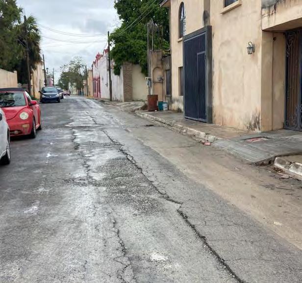 Otra vialidad dañada por el paso de unidades pesadas en la Altamirano, ruta que toman cientos de pipas diariamente para entrar y salir de las instalaciones de Pemex.