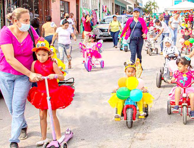 Durante dicha dinámica, los pequeños disfrazados de dinosaurios, mariposas, hadas y abejitas, realizaron la “Carrera sobre Ruedas” en sus triciclos y patines decorados, para enseguida, junto a sus padres, participar en la activación física con divertidos bailables.